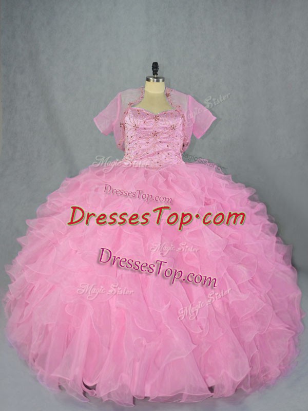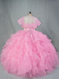 Floor Length Ball Gowns Sleeveless Baby Pink Quinceanera Dresses Lace Up
