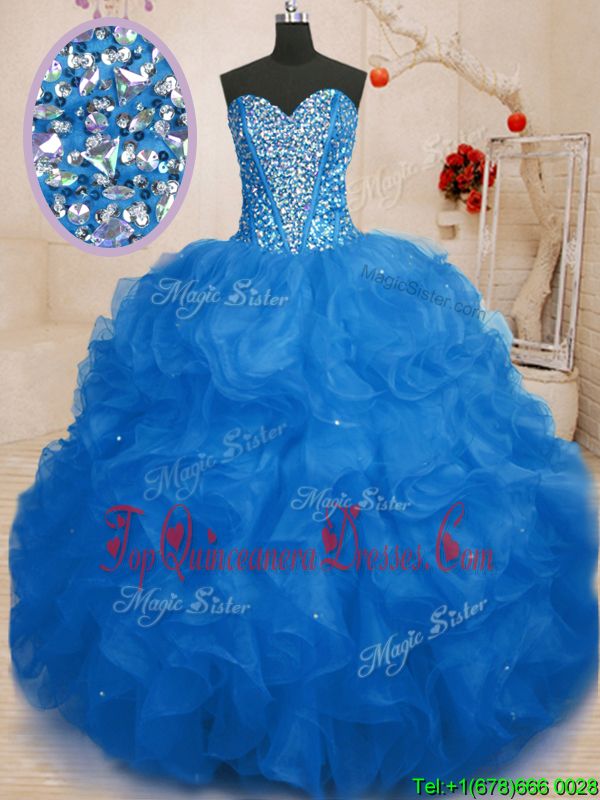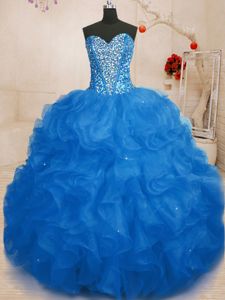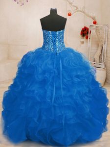 Floor Length Ball Gowns Sleeveless Blue Quinceanera Gowns Lace Up