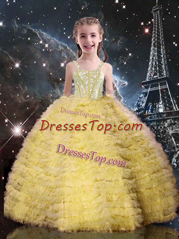 Floor Length Ball Gowns Sleeveless Champagne Little Girls Pageant Dress Lace Up