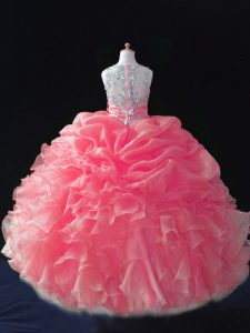 Floor Length Ball Gowns Sleeveless Coral Red Little Girl Pageant Gowns Zipper