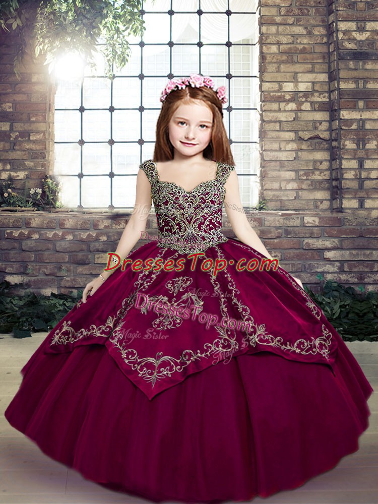 Floor Length Ball Gowns Sleeveless Fuchsia Pageant Gowns For Girls Lace Up