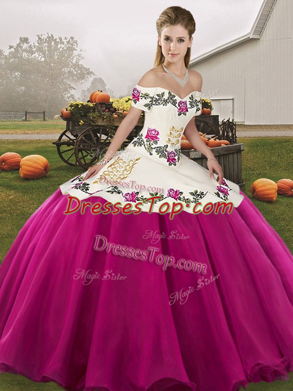 Floor Length Ball Gowns Sleeveless Fuchsia Quince Ball Gowns Lace Up