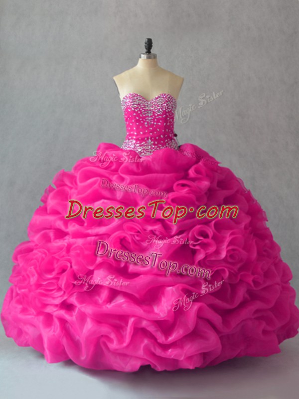 Floor Length Ball Gowns Sleeveless Fuchsia Quinceanera Dress Lace Up