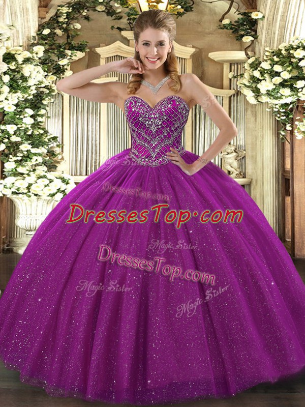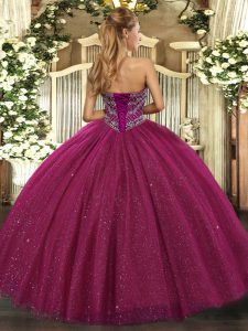 Floor Length Ball Gowns Sleeveless Fuchsia Quinceanera Dresses Lace Up