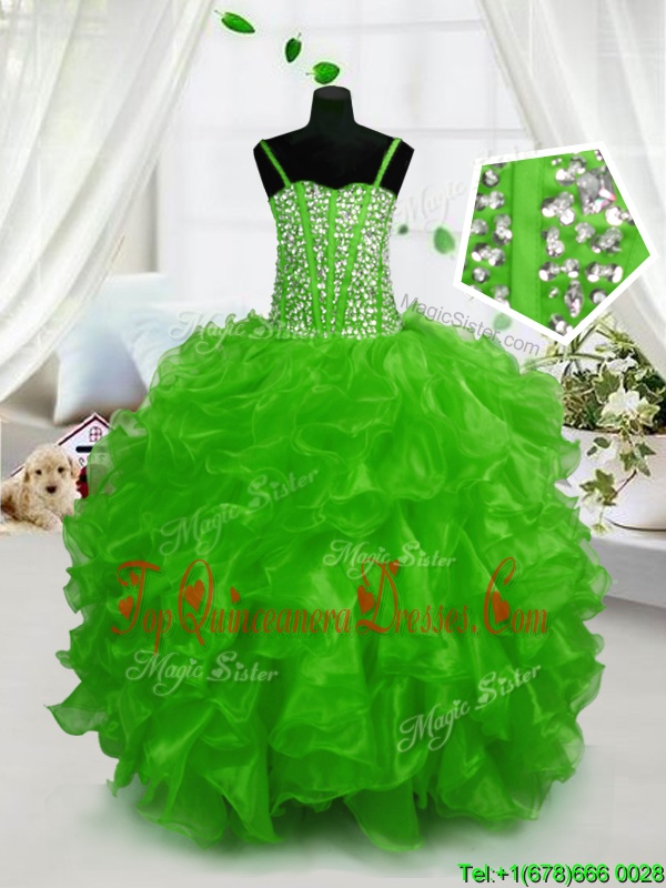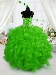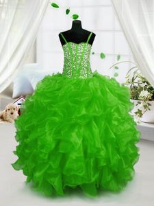 Floor Length Ball Gowns Sleeveless Green Pageant Gowns Lace Up