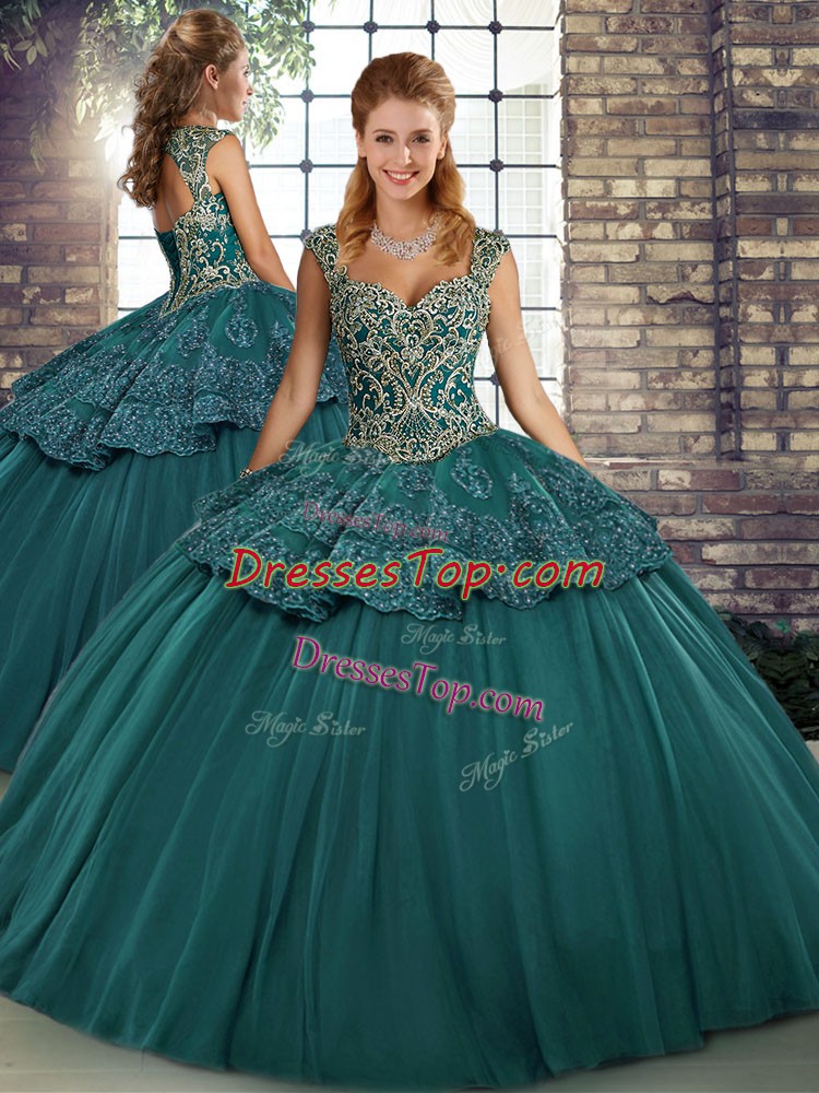 Floor Length Ball Gowns Sleeveless Green Quinceanera Gown Lace Up