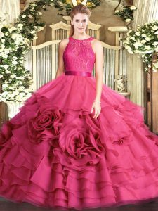 Floor Length Ball Gowns Sleeveless Hot Pink Ball Gown Prom Dress Zipper