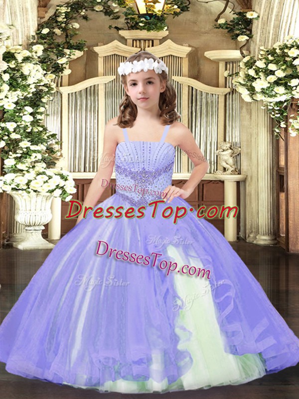 Floor Length Ball Gowns Sleeveless Lavender Pageant Dress for Womens Lace Up
