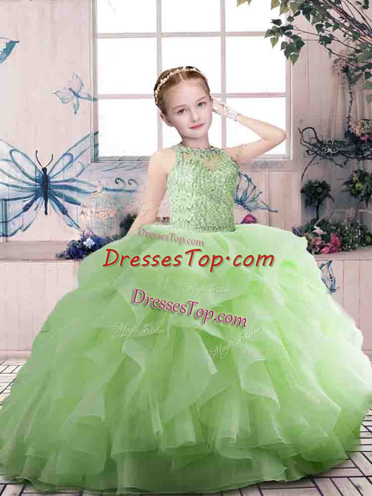 Floor Length Ball Gowns Sleeveless Little Girls Pageant Gowns Zipper