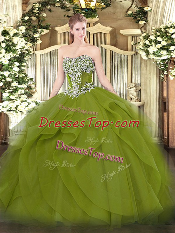 Floor Length Ball Gowns Sleeveless Olive Green Quinceanera Dresses Lace Up