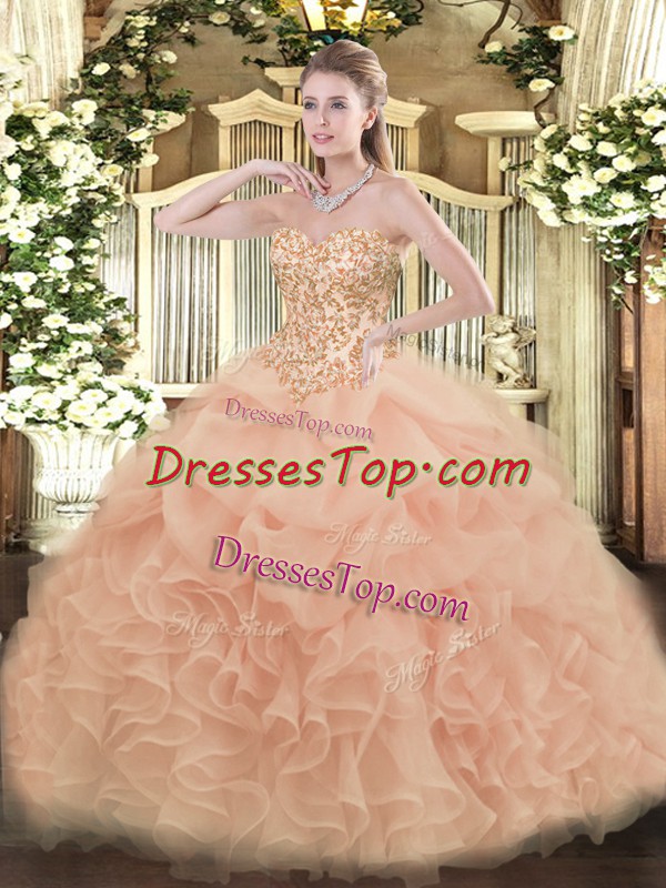Floor Length Ball Gowns Sleeveless Peach Quinceanera Dresses Lace Up