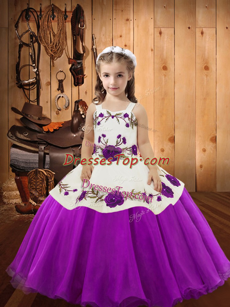 Floor Length Ball Gowns Sleeveless Purple Little Girls Pageant Gowns Lace Up