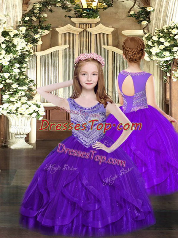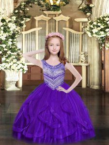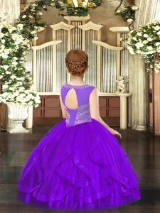 Floor Length Ball Gowns Sleeveless Purple Pageant Gowns For Girls Lace Up