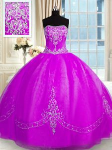 Floor Length Ball Gowns Sleeveless Purple Quinceanera Gown Lace Up