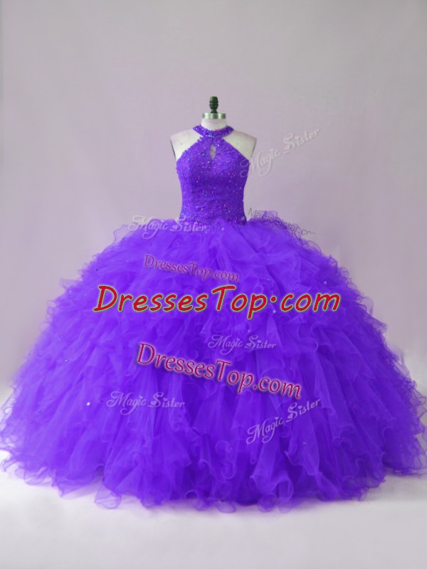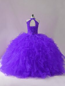 Floor Length Ball Gowns Sleeveless Purple Sweet 16 Dress Lace Up