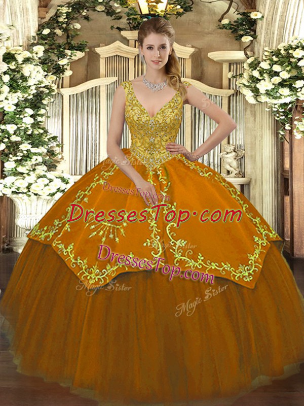 Floor Length Ball Gowns Sleeveless Rust Red Vestidos de Quinceanera Zipper