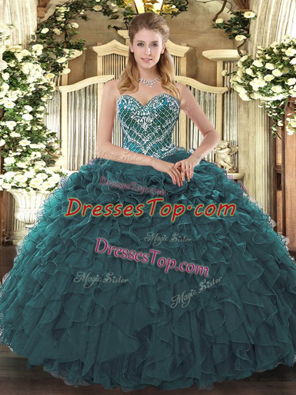 Floor Length Ball Gowns Sleeveless Teal 15 Quinceanera Dress Lace Up