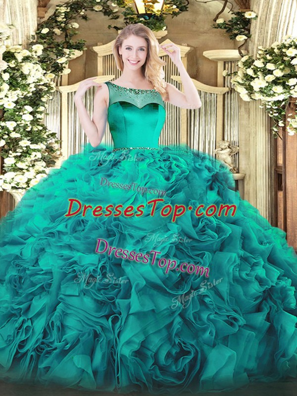 Floor Length Ball Gowns Sleeveless Teal Quince Ball Gowns Zipper