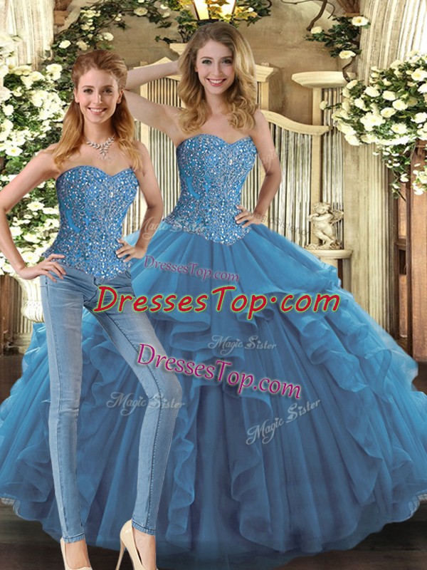 Floor Length Ball Gowns Sleeveless Teal Sweet 16 Dresses Lace Up