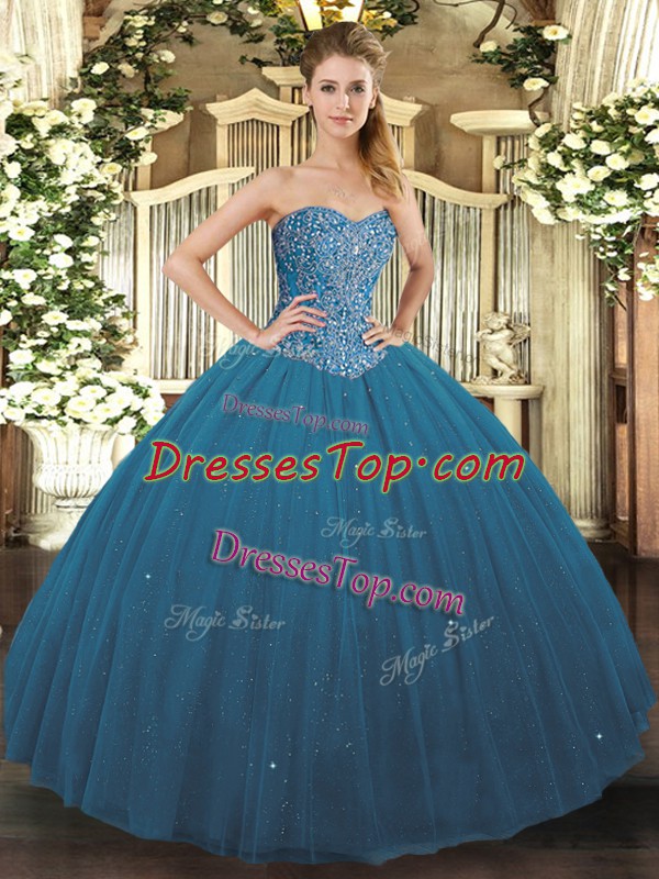 Floor Length Ball Gowns Sleeveless Teal Sweet 16 Quinceanera Dress Lace Up