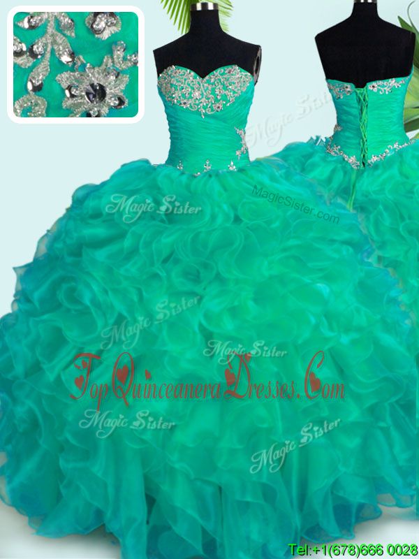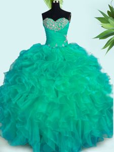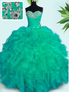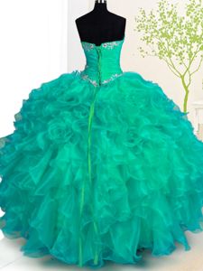 Floor Length Ball Gowns Sleeveless Turquoise 15th Birthday Dress Lace Up