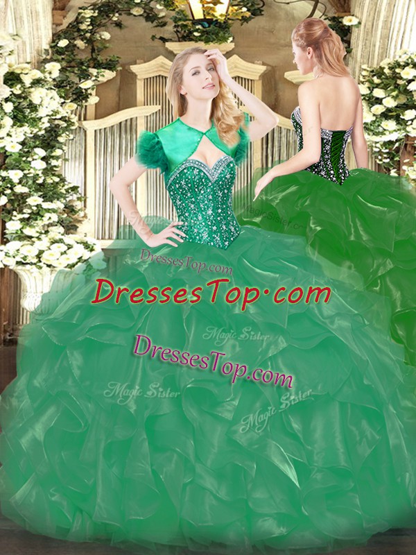 Floor Length Ball Gowns Sleeveless Turquoise Quinceanera Gown Lace Up