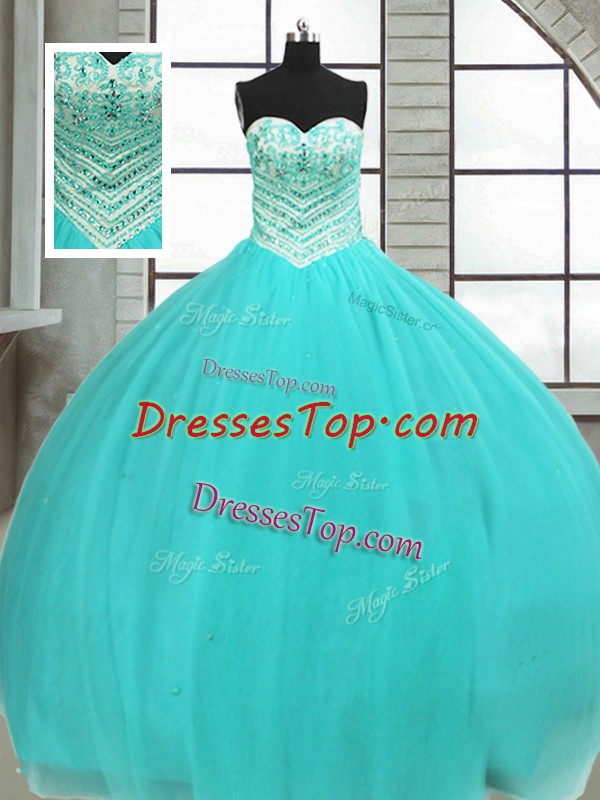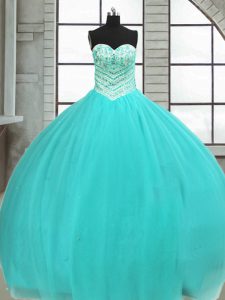 Floor Length Ball Gowns Sleeveless Turquoise Sweet 16 Dresses Lace Up