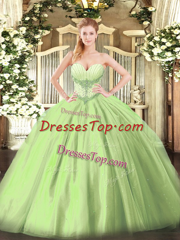 Floor Length Ball Gowns Sleeveless Yellow Green 15 Quinceanera Dress Lace Up
