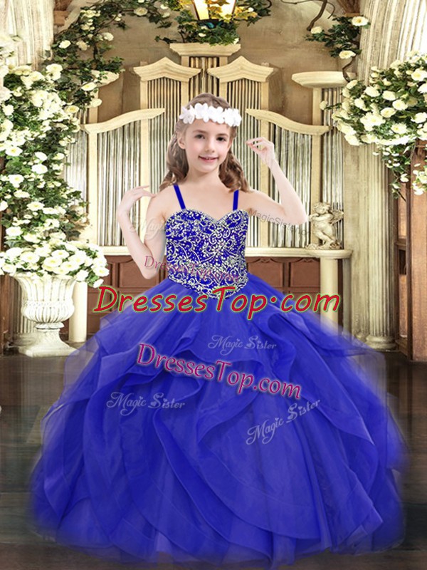 Floor Length Blue Little Girl Pageant Dress Straps Sleeveless Lace Up