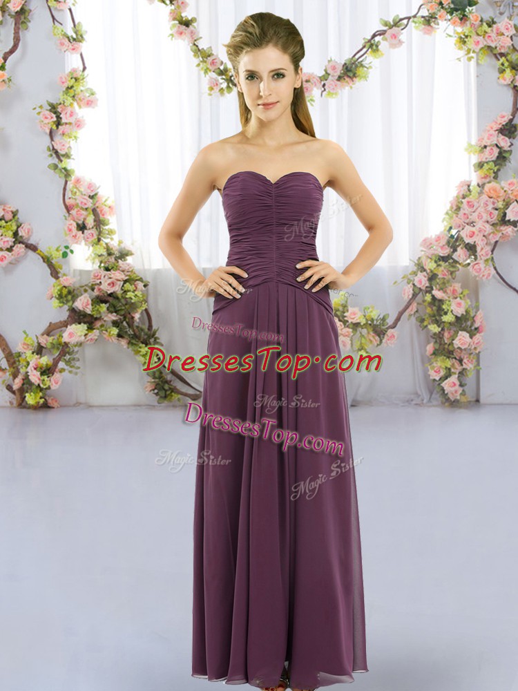 Floor Length Dark Purple Quinceanera Dama Dress Chiffon Sleeveless Ruching