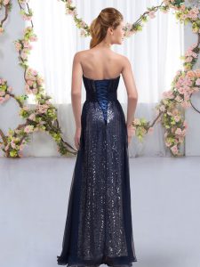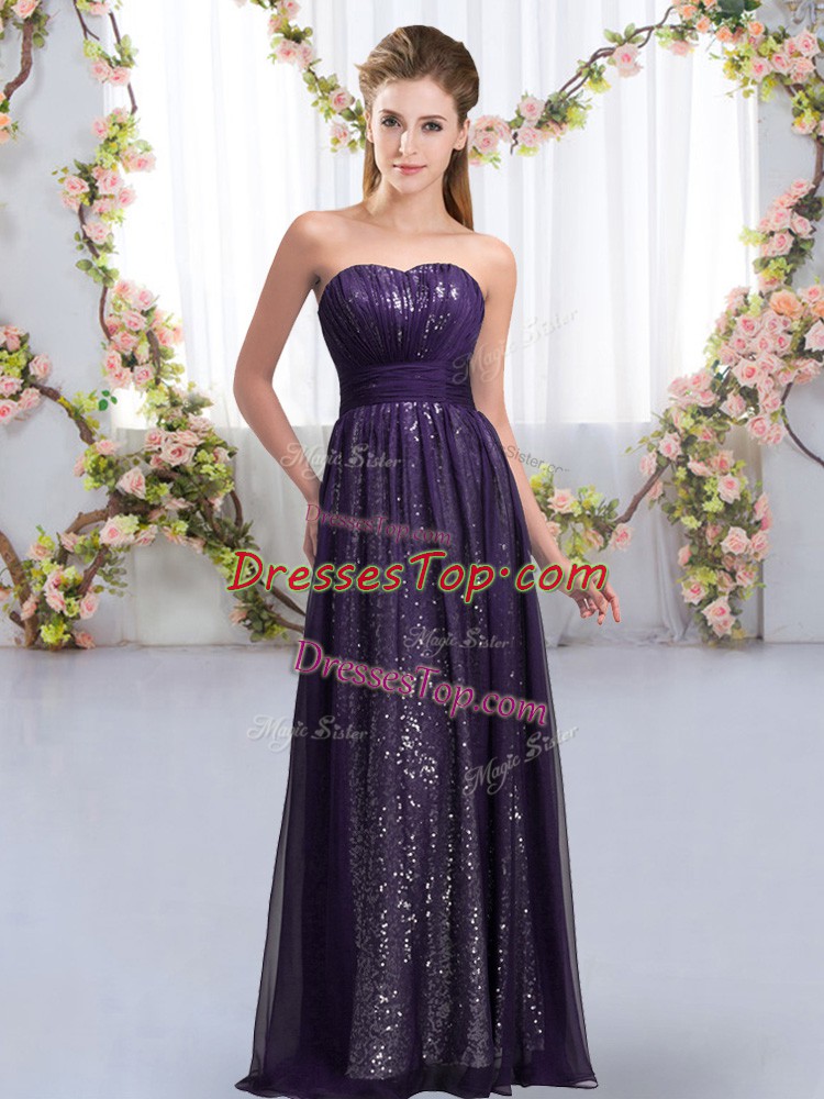 Floor Length Empire Sleeveless Dark Purple Quinceanera Court of Honor Dress Lace Up