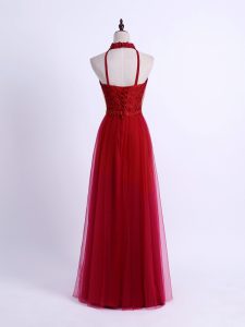 Floor Length Empire Sleeveless Wine Red Damas Dress Lace Up