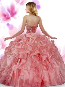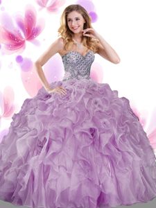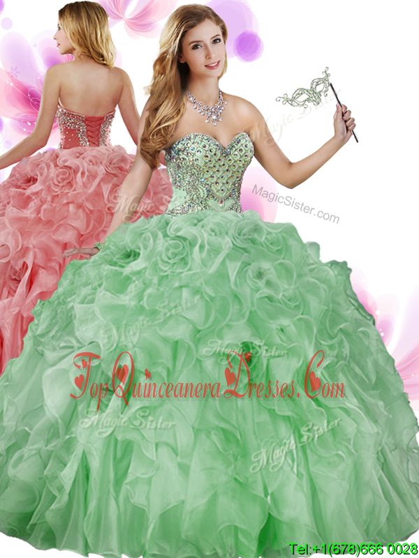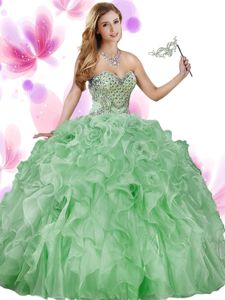 Floor Length Green Quinceanera Dresses Organza Sleeveless Beading and Ruffles