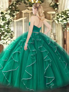 Floor Length Green Quinceanera Dresses Organza Sleeveless Ruffles