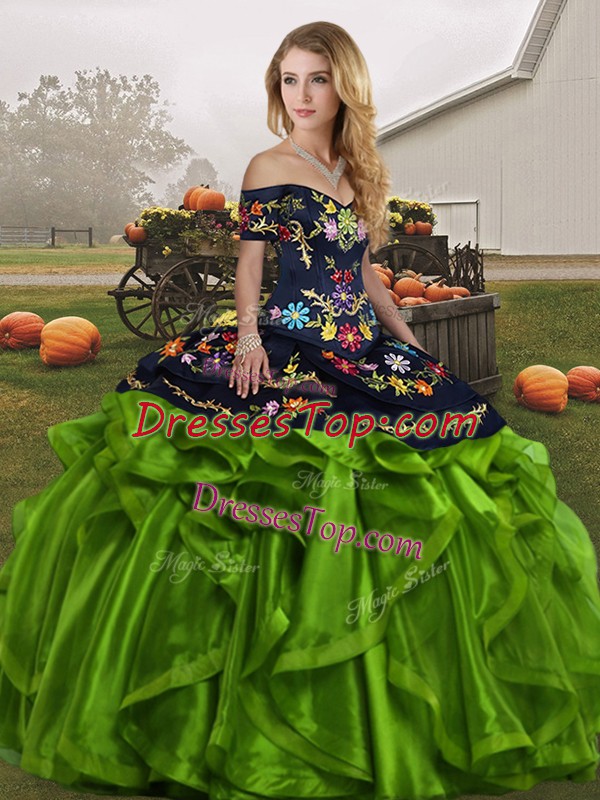 Floor Length Green Sweet 16 Dresses Organza Sleeveless Embroidery and Ruffles