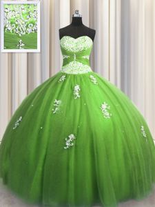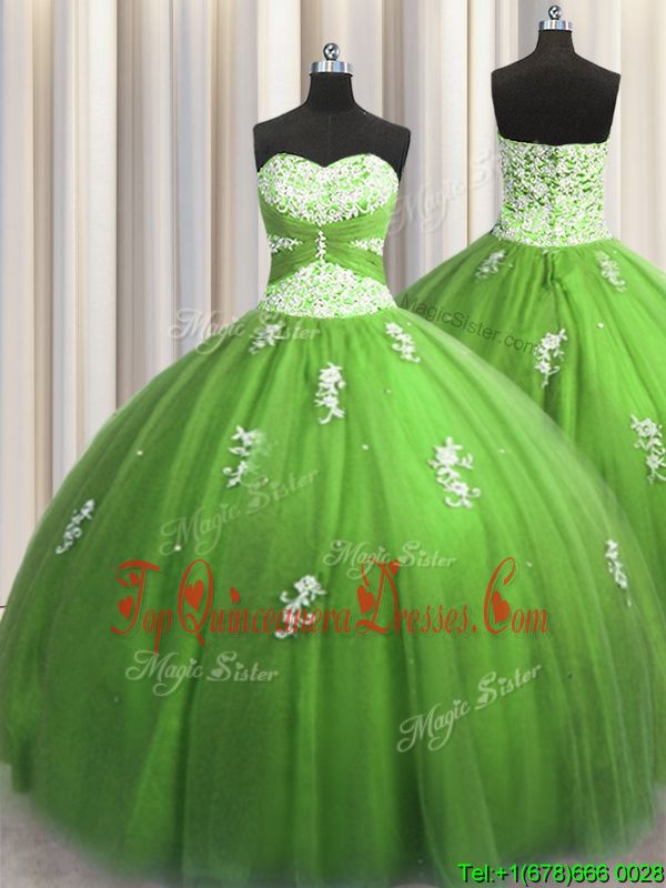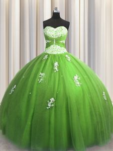 Floor Length Green Sweet 16 Quinceanera Dress Tulle Sleeveless Beading and Appliques