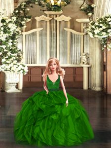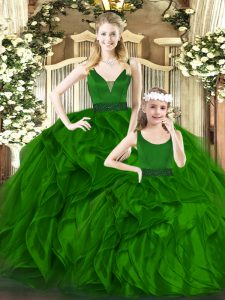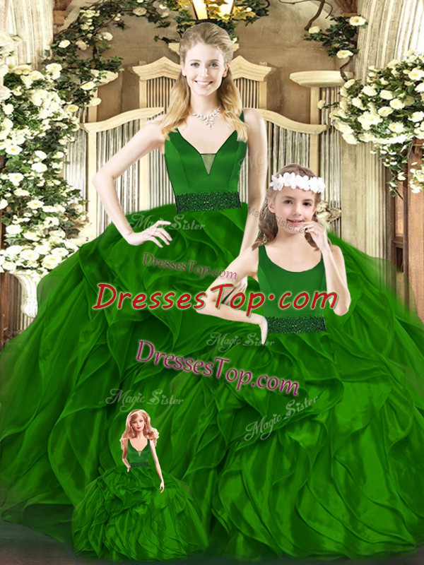 Floor Length Green Vestidos de Quinceanera Organza Sleeveless Beading and Ruffles
