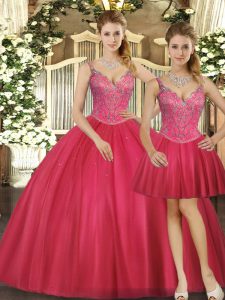 Floor Length Hot Pink Sweet 16 Dresses Straps Sleeveless Lace Up