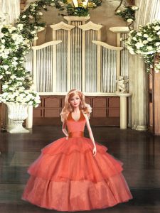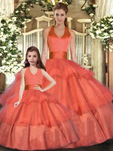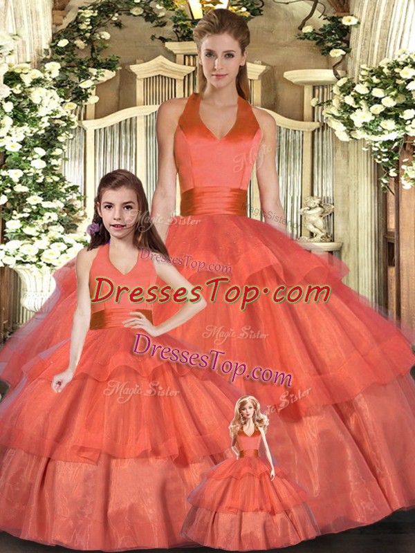 Floor Length Lace Up 15 Quinceanera Dress Orange Red for Sweet 16 and Quinceanera with Ruffled Layers