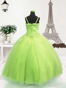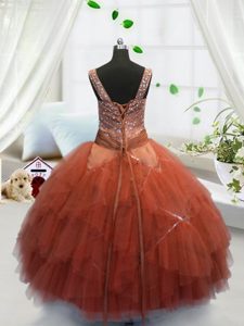 Floor Length Lace Up Child Pageant Dress Orange Red and In for Party and Wedding Party with Beading and Ruffles