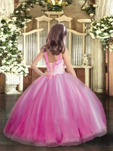 Floor Length Lace Up Kids Pageant Dress Lavender for Party and Wedding Party with Beading