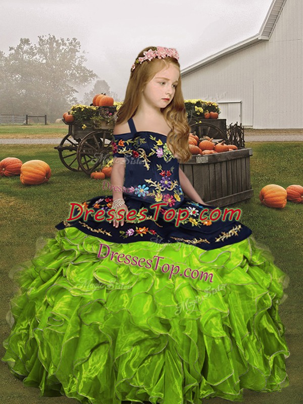 Floor Length Lace Up Little Girl Pageant Dress for Party and Wedding Party with Embroidery