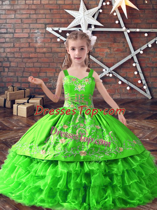 Floor Length Lace Up Little Girls Pageant Dress for Wedding Party with Embroidery and Ruffled Layers