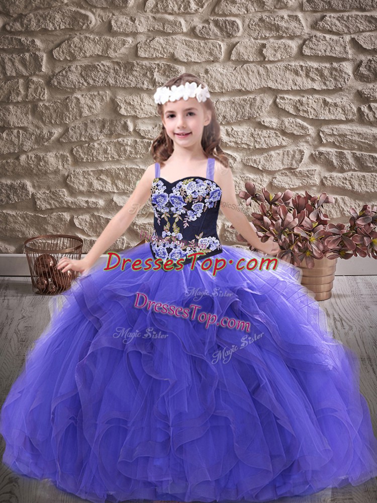 Floor Length Lace Up Little Girls Pageant Dress Wholesale Purple for Party and Wedding Party with Embroidery and Ruffles