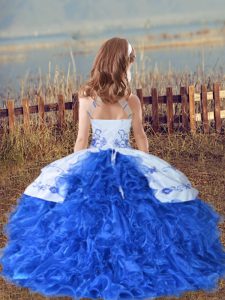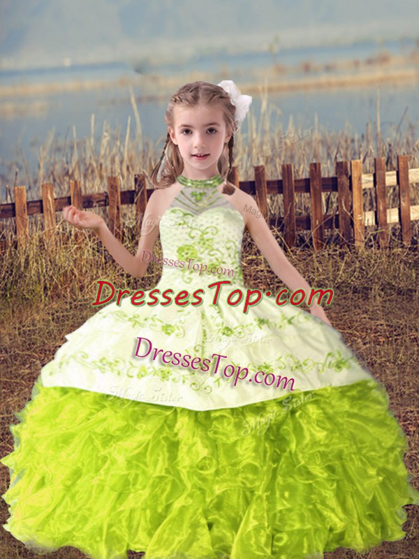 Floor Length Lace Up Little Girls Pageant Dress Yellow Green for Wedding Party with Beading and Embroidery and Ruffles