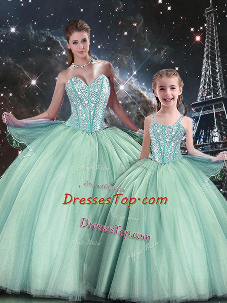 Floor Length Lace Up Quince Ball Gowns Turquoise for Military Ball and Sweet 16 and Quinceanera with Beading