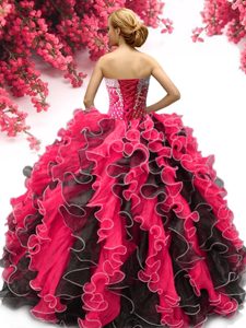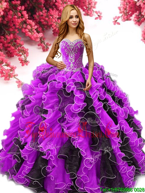 Floor Length Lace Up Quinceanera Dress Multi-color and In for Military Ball and Sweet 16 and Quinceanera with Beading and Ruffles