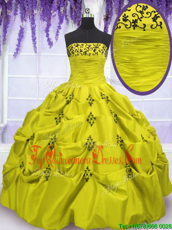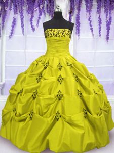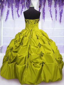 Floor Length Lace Up Quinceanera Dress Olive Green and In for Military Ball and Sweet 16 and Quinceanera with Embroidery and Ruffled Layers