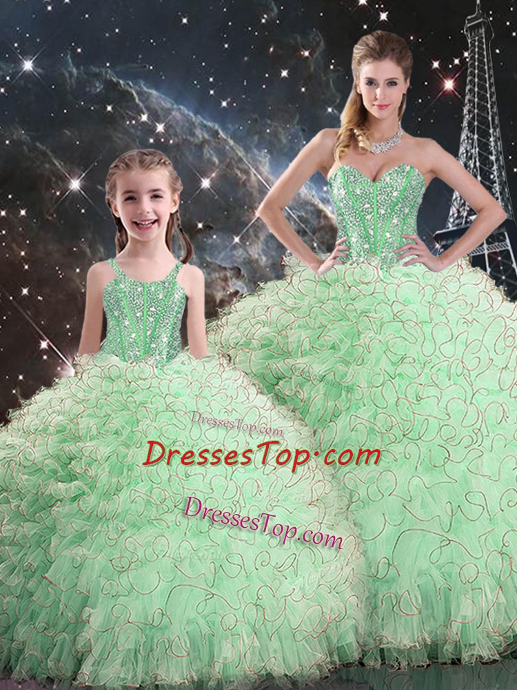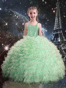 Floor Length Lace Up Quinceanera Gowns Apple Green for Military Ball and Sweet 16 and Quinceanera with Beading and Ruffles
