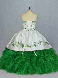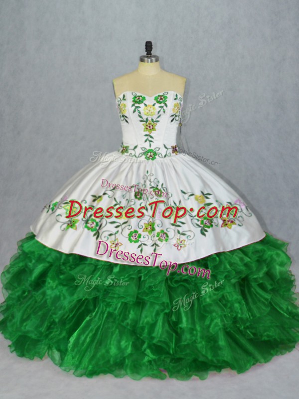 Floor Length Lace Up Quinceanera Gowns Green for Sweet 16 and Quinceanera with Embroidery and Ruffles